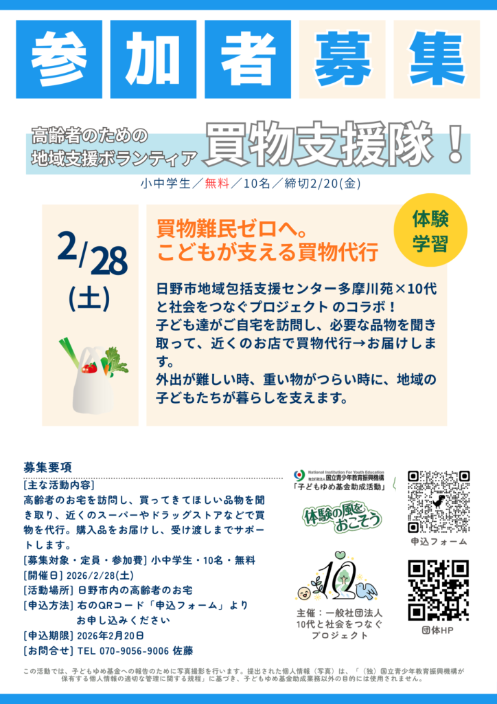 【お知らせ】高齢者のための地域支援ボランティア「買物支援隊!」