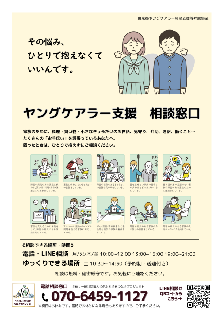 東京都ヤングケアラー相談支援等補助事業として、「ヤングケアラー支援 相談窓口」を新たに開設しました。